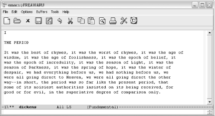To turn on CUA mode, select C-x/C-c/C-v cut-and-paste (CUA) from the Options menu. If you decide you want to use CUA mode for multiple sessions, select Save Options to have Custom (discussed in Chapter 10) automatically add it to your .emacs file. As you can see from the option name, in this mode, C-x is used for cutting text, C-c is used for copying text, and C-v is used for pasting text. What is not so apparent is that C-z runs undo rather than minimizing the window (in CUA mode, you can minimize using C-x C-z). What if you're used to confirming a region before you cut it using C-x C-x? You can type C-c C-x C-x in this case. This works in part because C-c cancels the active region. Remember that C-x would normally cut. Strictly speaking, C-x C-x doesn't immediately cut text, if you type it fast enough. Cut is really bound to C-x <timeout>. In other words, Emacs is watching to see if you type something else really quickly. If you have a region highlighted and type C-x C-s to save the buffer, Emacs does the right thing. But if you pause after C-x, you'll cut text. This is true of C-c as well. If you immediately type another sequence after C-c, Emacs uses C-c as a prefix. If you pause, it copies the highlighted text. CUA mode has a few other interesting behaviors. It has highly advanced rectangle support. (Rectangle editing is described in Chapter 7.) It also has the common behavior of replacing highlighted text. If you select a region and start typing, the highlighted text is replaced. Taking this one step further, you can do a quick and dirty search and replace in this way. Let's say that the text you typed over is just the first of several identical instances where you want to replace text. Typing M-v (for cua-repeat-replace-region) replaces the next instance. Repeat this command to continue making replacements. If there is no string to replace, M-v does nothing. For example, let's take our classic Dickens passage and replace the word times with rhymes: