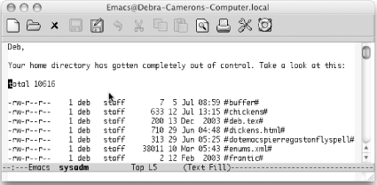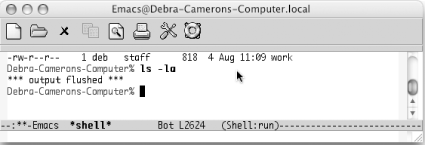 5.1. Executing Commands in Shell BuffersOne of the most important features of Emacs is its ability to run a command shell in a buffer. Once you have started a shell buffer, you can do all of your normal command-line work within Emacs. What does this buy you?